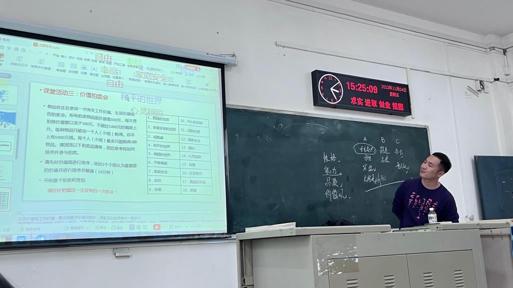 “有目标,才能更好地成长。”李博老师采取视频+提问的方式,以同学们的作答情况论证了个人的精力是有限的,倡导同学们划分目标、奋力实干,踏踏实实追求个人目标,不断展现最好的自己。