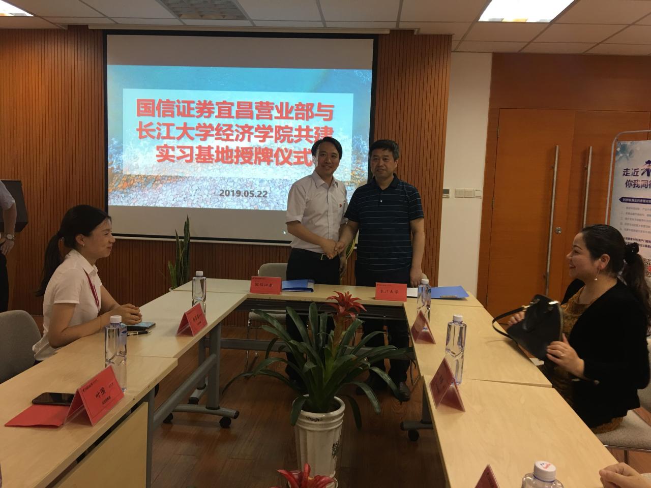 为搭建优质实习基地,建立良好校企合作关系,2019年5月22号,永利集团经济学院与国信证券宜昌营业部共建实习基地授牌仪式正式举行。院长伟鸿率队,副院长徐辉、副书记王中梅、学工办主任平先锋参与合作签署仪式,作签署仪式在国信证券宜昌营业部举行。