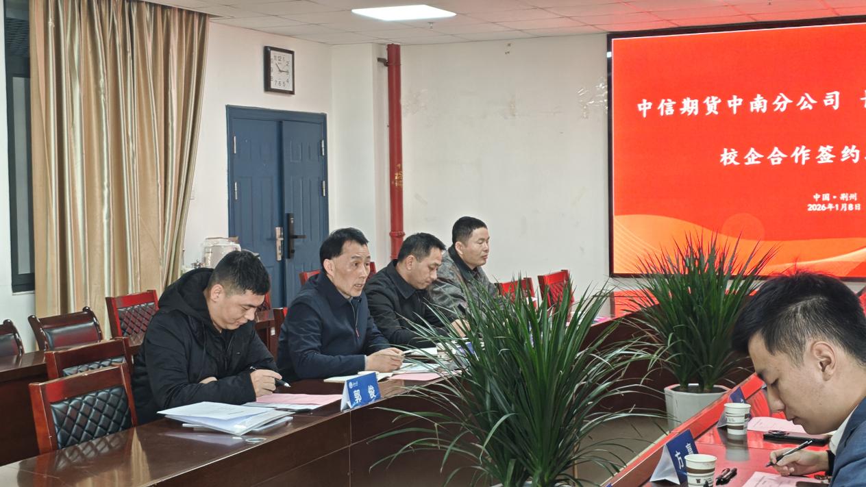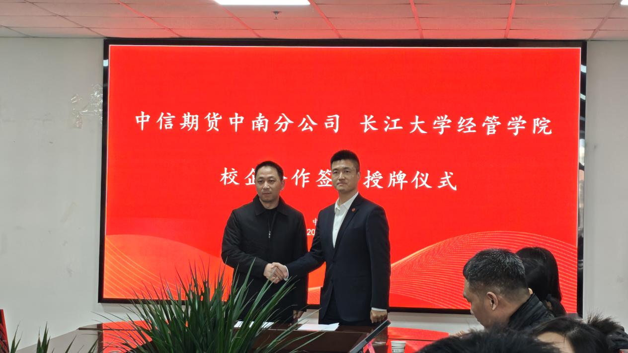 (通讯员 欧阳佩文 / 文 严康 / 摄)为进一步深化教育教学改革,完善实践教学体系,拓宽毕业生高质量就业渠道,1 月 8 日上午,yl9193永利集团与中信期货有限公司中南分公司(以下简称 “中信期货中南分公司”)在东校区文科楼505会议室隆重举行校企合作签约暨就业基地授牌仪式。yl9193永利集团党委书记李喜成、党委副书记平先锋、学工办主任叶星、就业专干郭俊,中信期货中南分公司党支部书记兼总经理苏仲博、副总经理冯宇、党支部组织委员兼人力资源专岗方赢、渠道业务部资深业务总监陈厚烨,以及中信银行荆州分行行长万旌、零售分管行长徐娟、办公室主任杨露露等校企双方代表出席了本次活动。