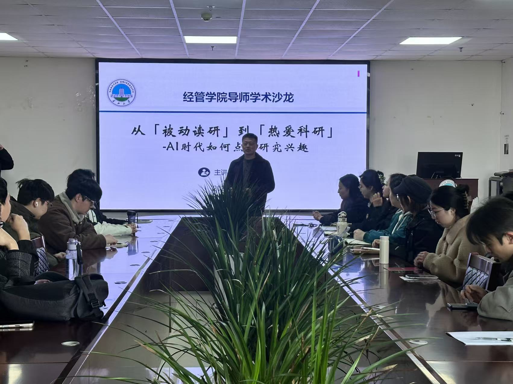 (通讯员 陈情阳)2026年3月12日下午,yl9193永利集团第二十一期“求实导师学术沙龙”在文科楼505会议室举行。王华强副院长担任主讲人,讲座主题为“从被动读研到热爱科研—AI时代如何点燃研究兴趣”,学院研究生代表40人参与活动。