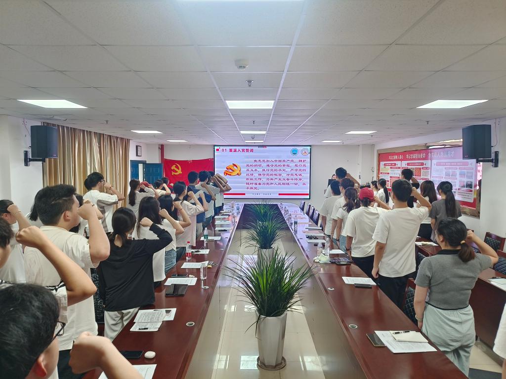 会议伊始,全体与会毕业生党员在党旗下庄严宣誓,重温入党誓词。铿锵有力的誓言,饱含着毕业生党员对党的无限忠诚和为共产主义事业奋斗终身的坚定决心。