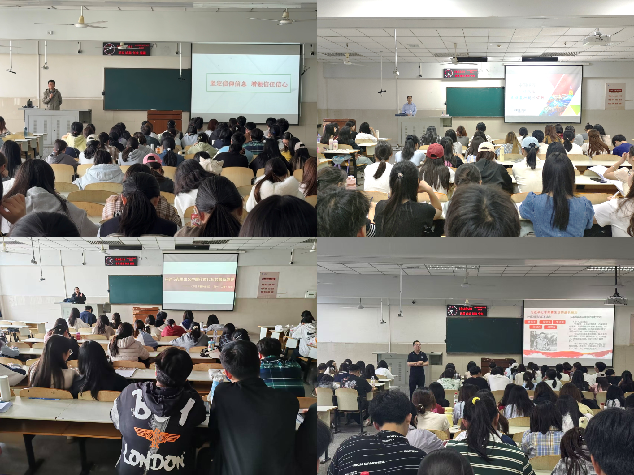 李喜成以《坚定信仰信念,增强信任信心》为题,引导学员筑牢信仰之基、补足精神之钙。平先锋立足专业特色,以《中国经济行稳致远,民族复兴稳步前行》为主题,剖析中国经济发展的韧性、潜力与制度优势,号召青年学子将个人成长融入国家发展大局。孙萌以《开辟马克思主义中国化时代化的最新境界》为题,阐释了党的创新理论的最新成果。贺雄则以《习近平的七年知青岁月》为切入点,通过讲述青年习近平扎根基层、艰苦奋斗的真实故事,生动诠释共产党员的初心与情怀。